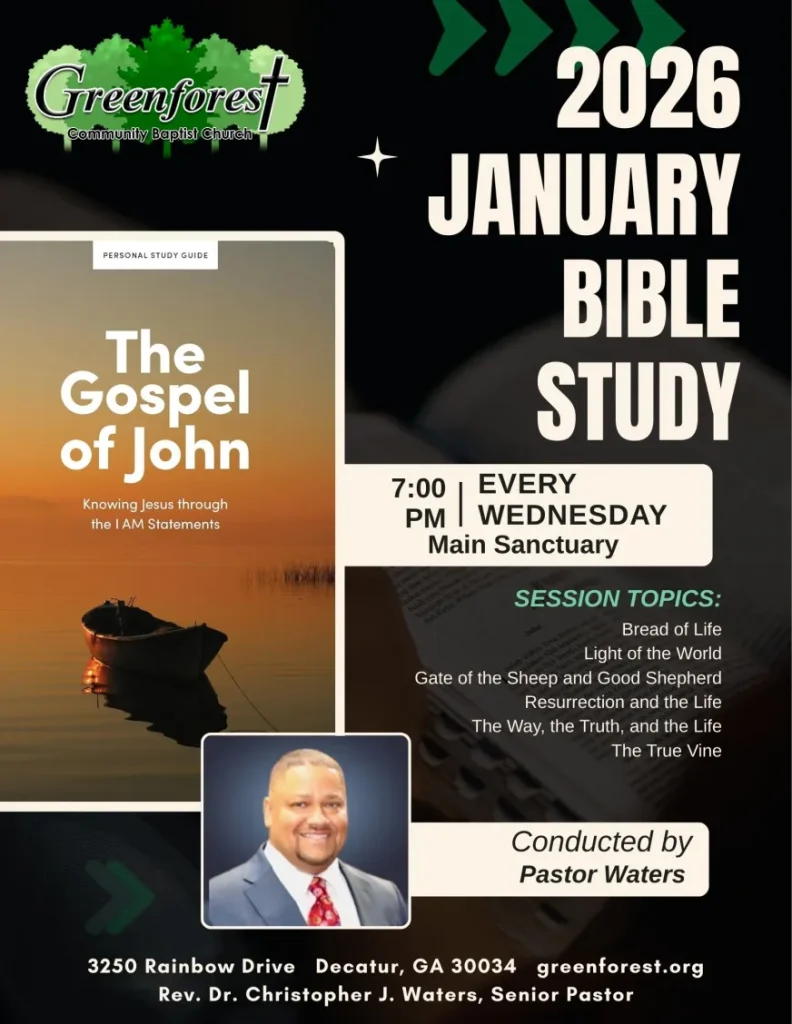 Join us for our January 2026 Bible Study. Wednesdays in January beginning at 7:00 p.m.