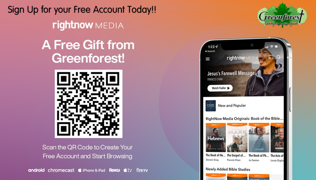 Greenforest is offering families an opportunity to Sign Up for a FREE RightNow Media account. Get your account NOW.